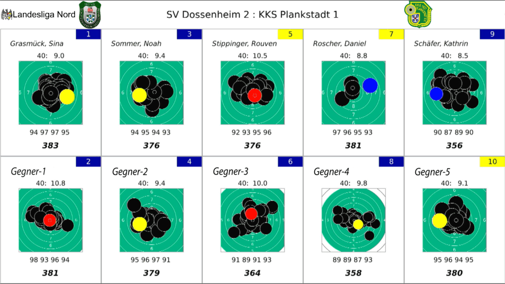 Der dritte Punkt für den SV Dossenheim geht an Postion 4 mit 381 Ringen an Daniel Roscher gegen 358 Ringen.